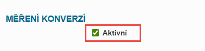 Pro měření konverzí je nutné tuto funkci aktivovat zaškrtnutím pole "Aktivní" v sekci "Měření konverzí".