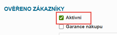 Funkci Ověřeno zákazníky je nutné aktivovat zaškrtnutím pole "Aktivní" v sekci "Ověřeno konverzí".